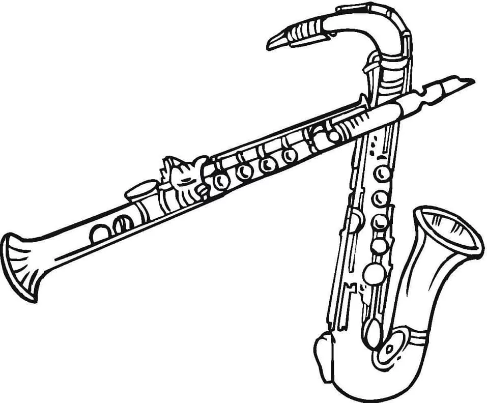 : Druckbar herunterladen Saxophon und Klarinette Malvorlage