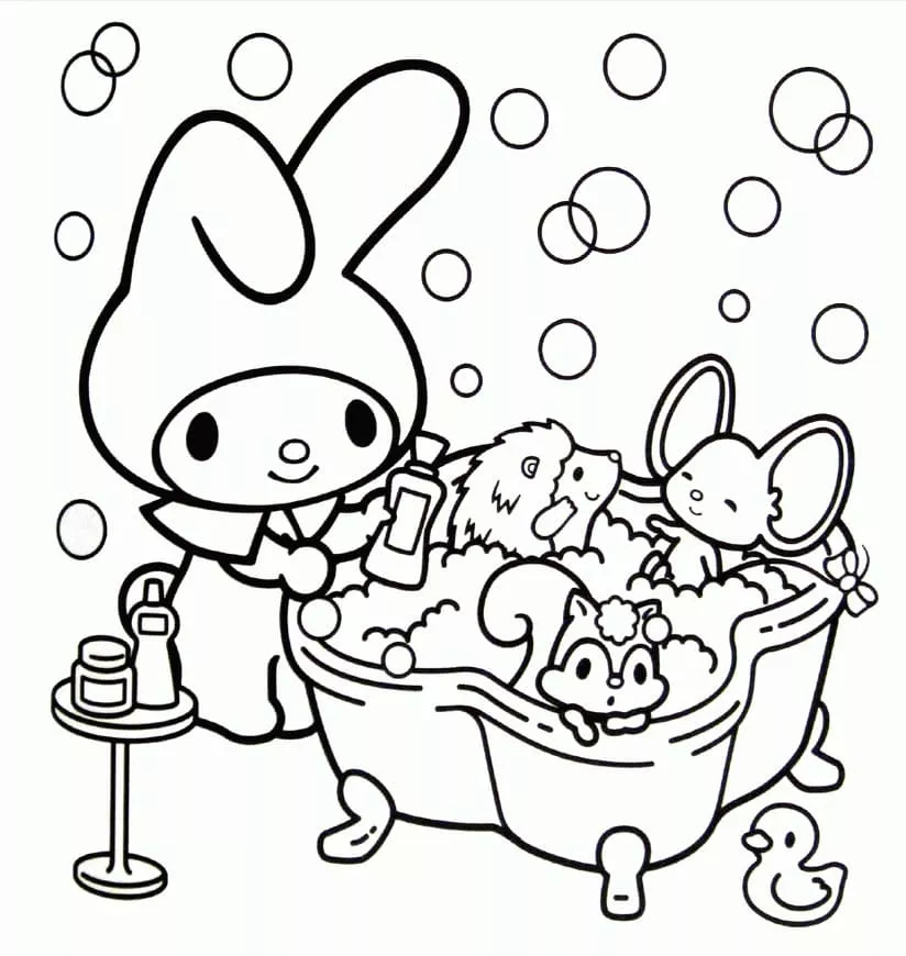 : Druckbar herunterladen My Melody in Bathroom Malvorlage