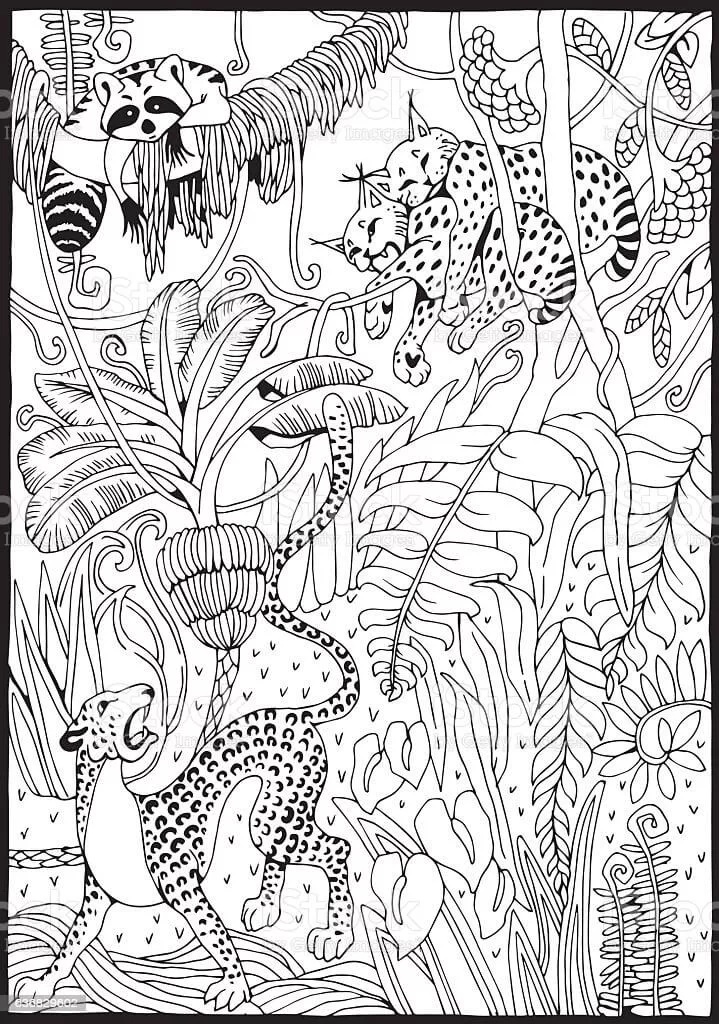: Druckbar herunterladen Dschungel 5 Malvorlage
