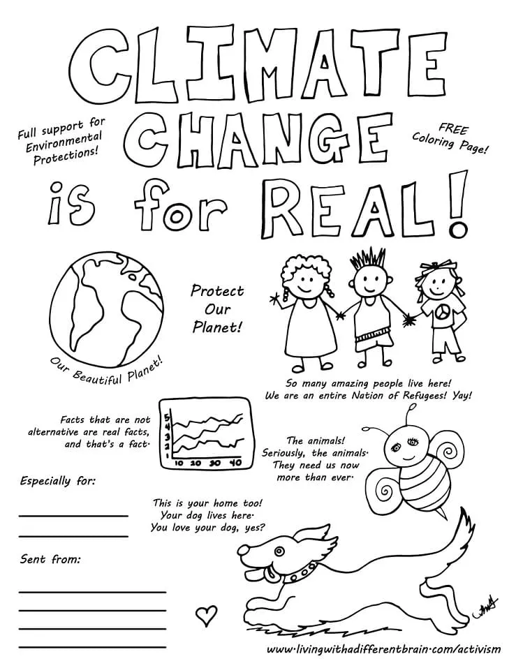 : Druckbar herunterladen Der Klimawandel ist real Malvorlage