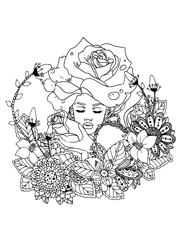 Beschreibung der Färbung : Druckbar herunterladen Gelassenheit im Blumengarten von Mutter Natur Malvorlage