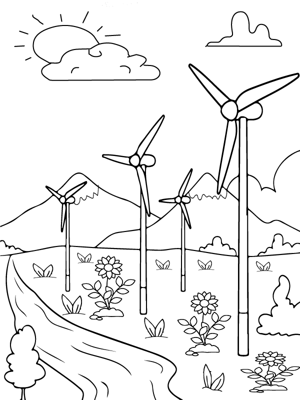 : Druckbar herunterladen Malvorlage Windmühlen im Freien Malvorlage