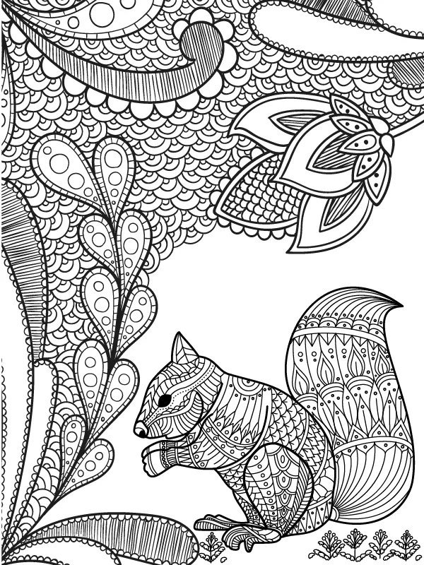 : Druckbar herunterladen Nature Mandala and Squirrel Malvorlage