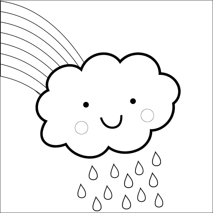 : Druckbar herunterladen Regenbogen mit niedlichen Wolken Malvorlage