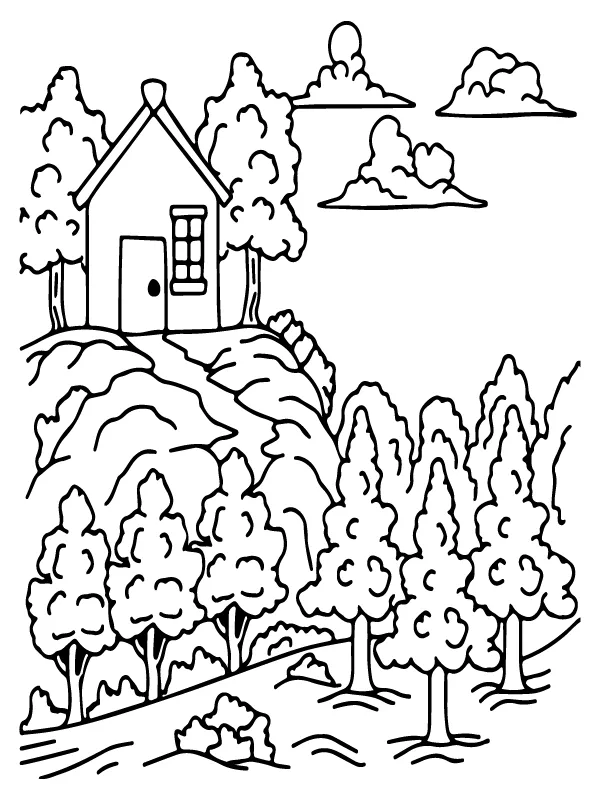 : Druckbar herunterladen Forest Hill Haus Malvorlage