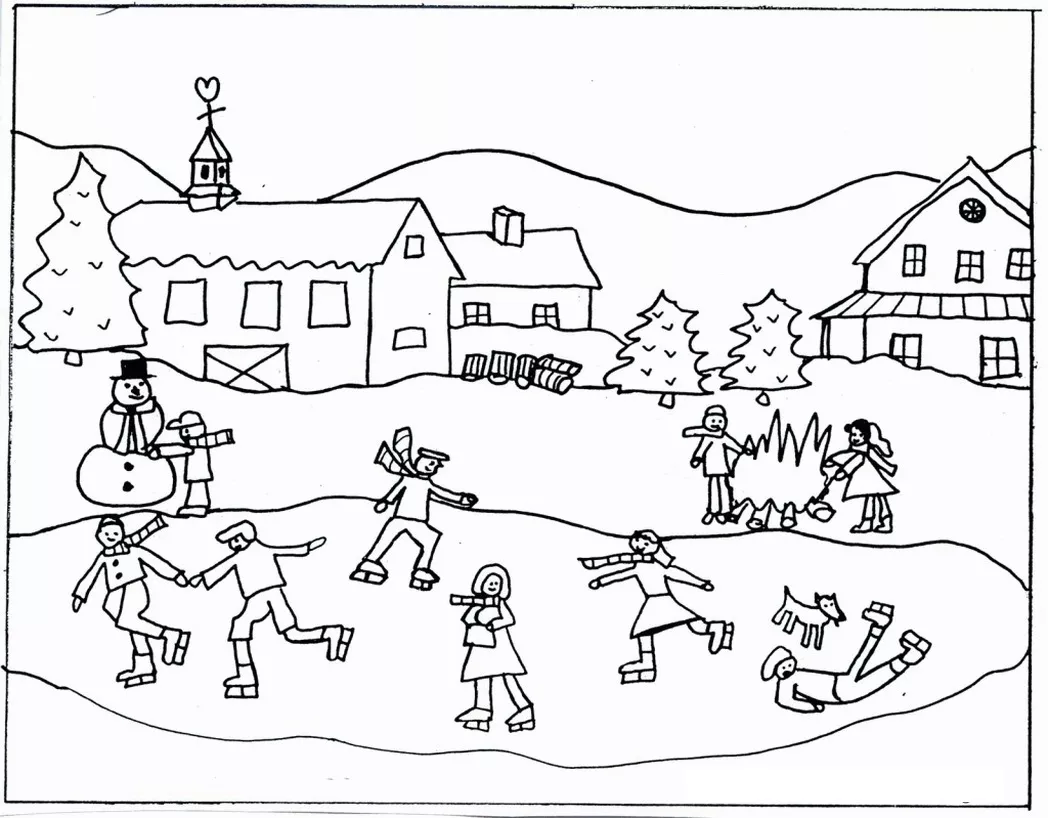 : Druckbar herunterladen Schlittschuhlaufen Winterszenen Malvorlage