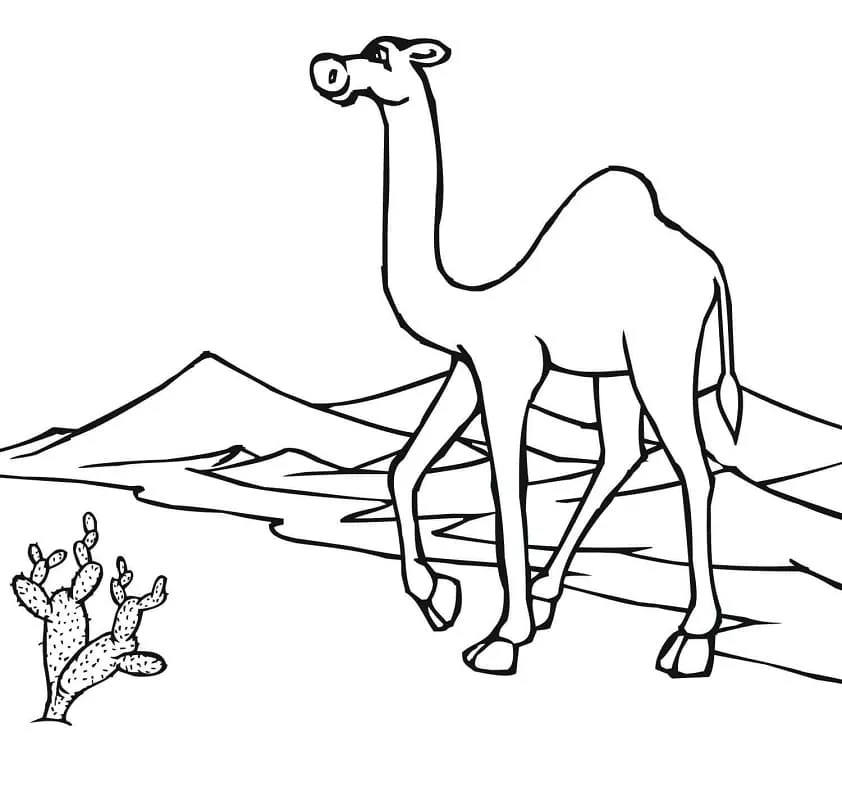 : Druckbar herunterladen Kamel in der Wüste Malvorlage