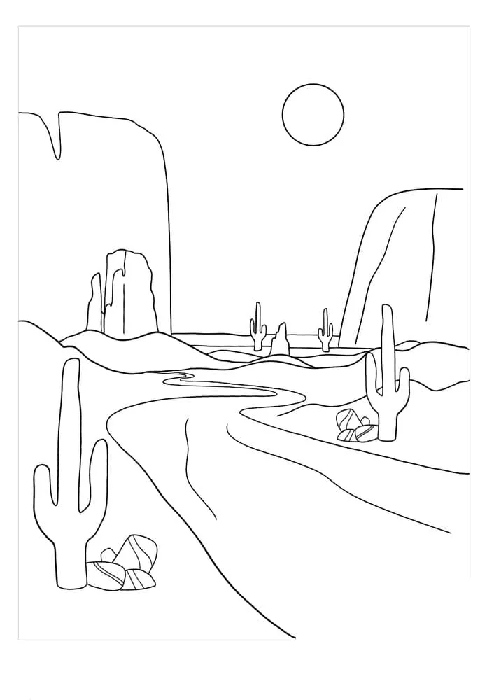 : Druckbar herunterladen Fluss in der Wüste Malvorlage