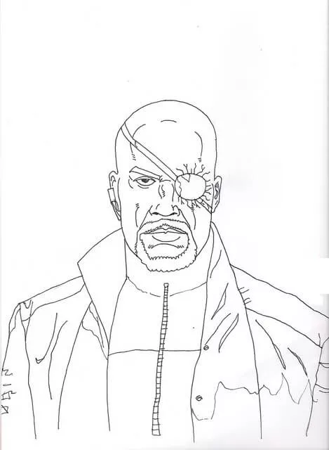 : Druckbar herunterladen Nick Fury’s Face Malvorlage
