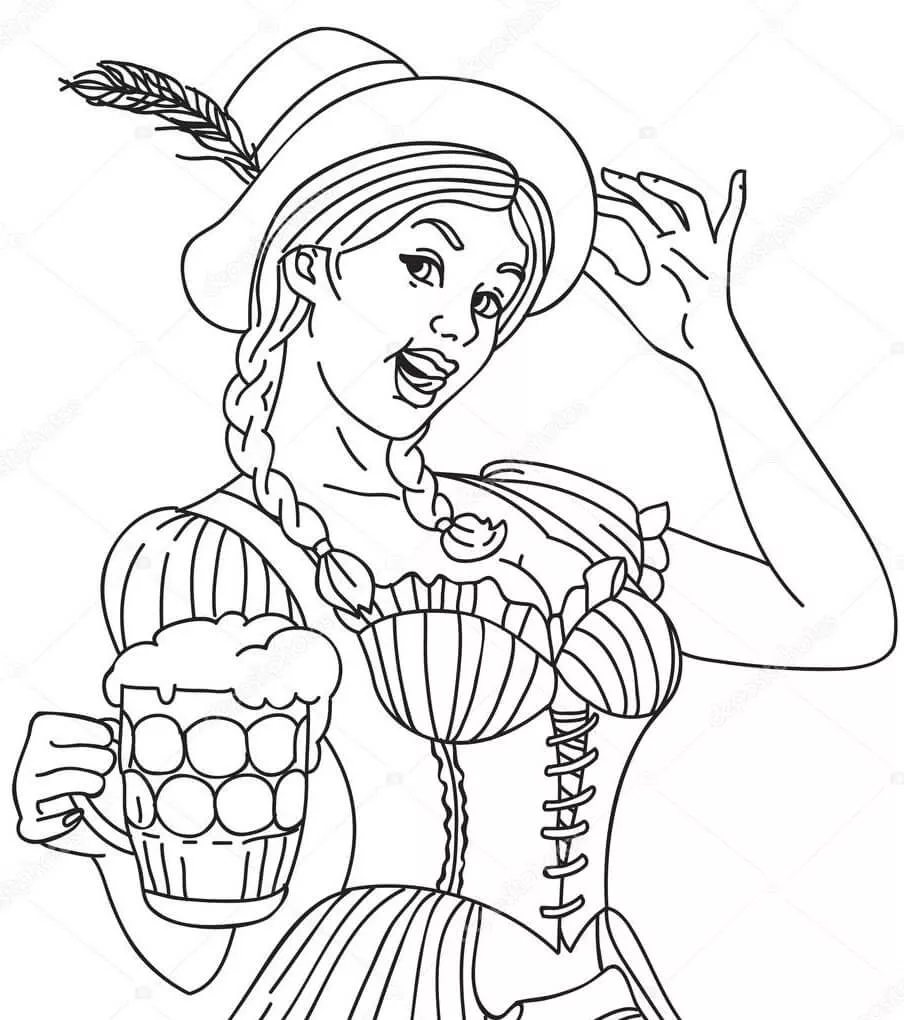 : Druckbar herunterladen Oktoberfest German Girl Malvorlage