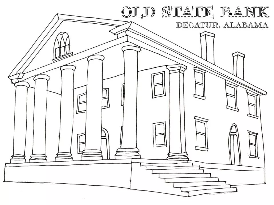 : Druckbar herunterladen Alte Staatsbank Malvorlage