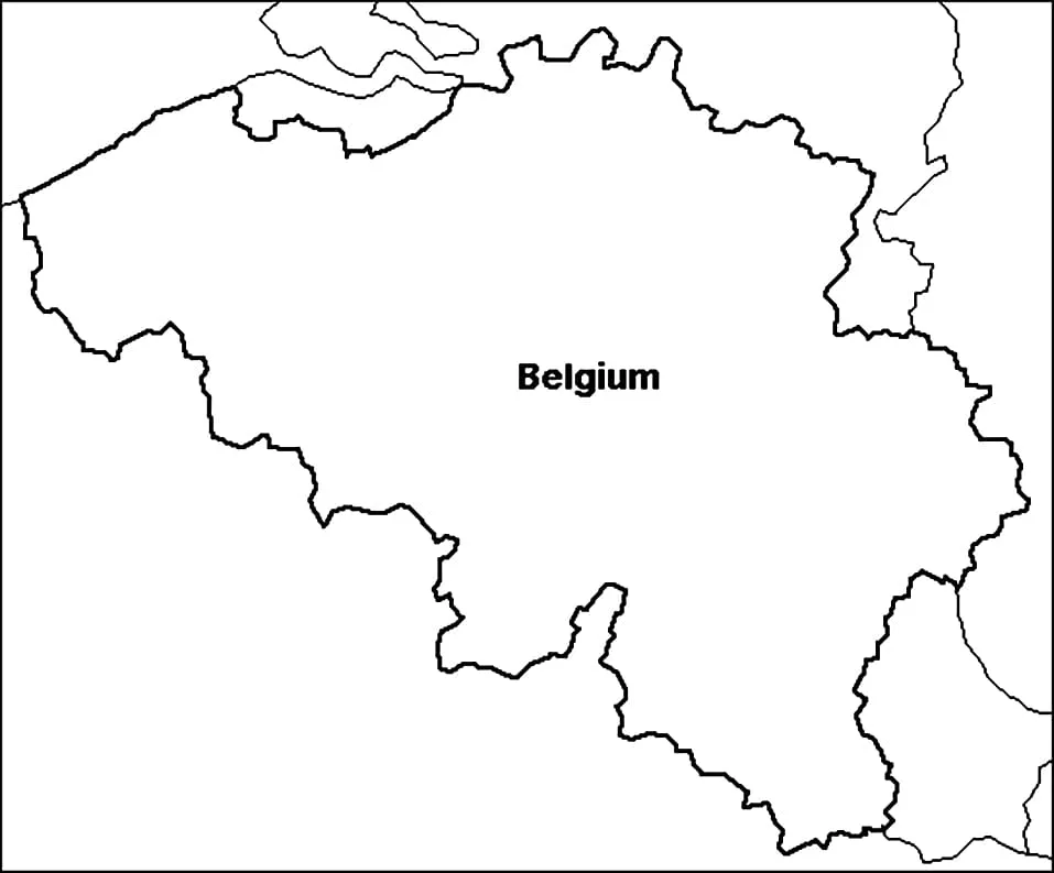 : Druckbar herunterladen Belgien Karte Übersicht Malvorlage
