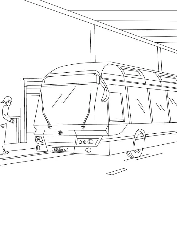 : Druckbar herunterladen Bushaltestelle zum Ausdrucken Malvorlage