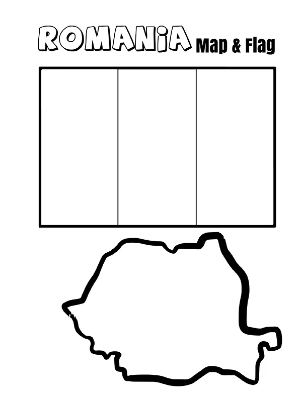 : Druckbar herunterladen Rumänien Karte und Flagge Malvorlage