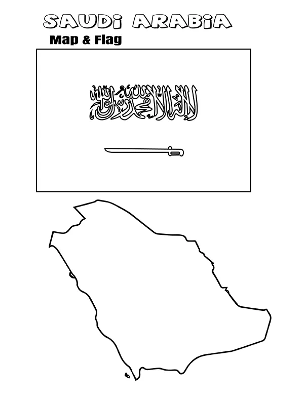 : Druckbar herunterladen Saudi-Arabien Flagge und Karte Malvorlage