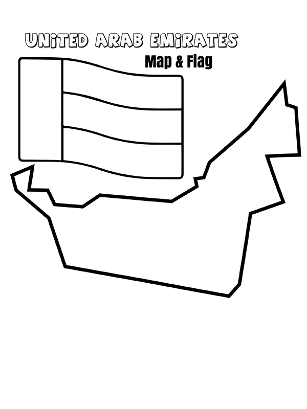 Beschreibung der Färbung : Druckbar herunterladen Vereinigte Arabische Emirate Landkarte und Flagge Malvorlage