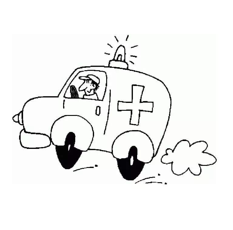 : Druckbar herunterladen Krankenwagen für Kinder Malvorlage