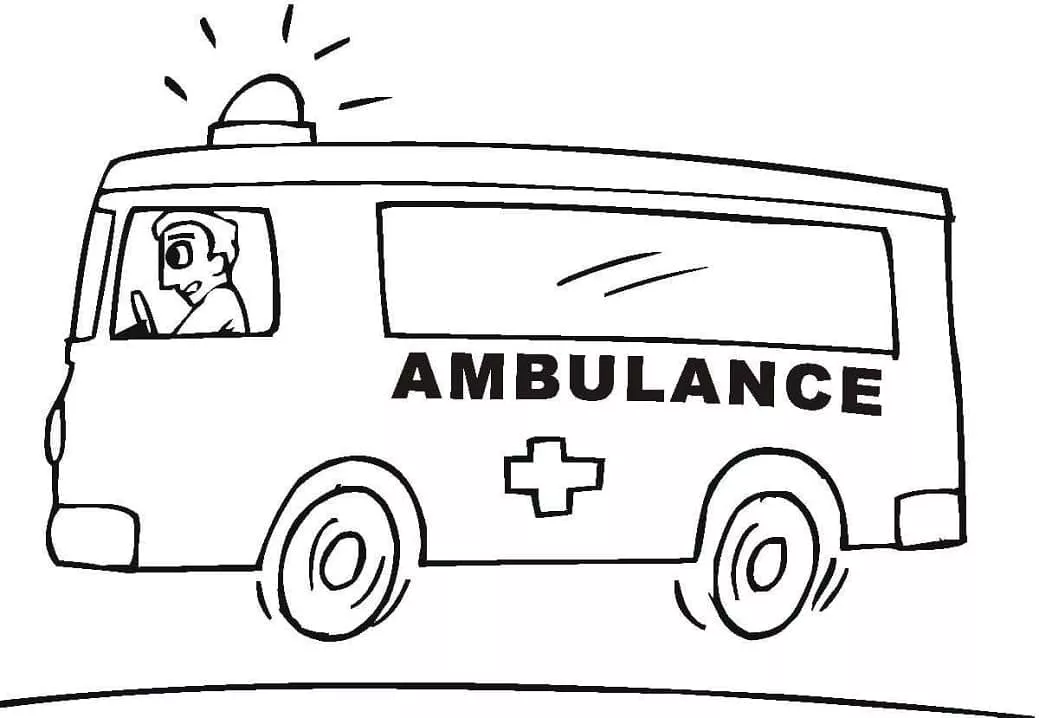 : Druckbar herunterladen Krankenwagen zum Ausdrucken Malvorlage