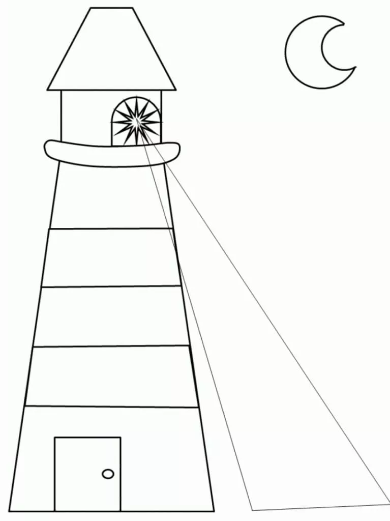 : Druckbar herunterladen Leuchtturm und Mond Malvorlage