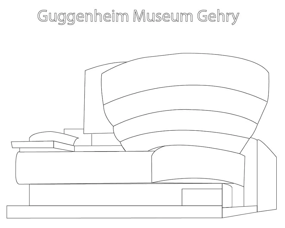 : Druckbar herunterladen Guggenheim Museum Gehry Malvorlage
