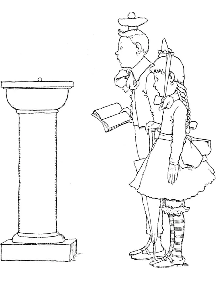: Druckbar herunterladen Kinder im Museum Malvorlage
