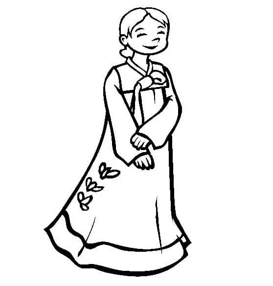: Druckbar herunterladen Mädchen in Hanbok Malvorlage