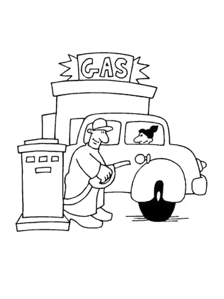 : Druckbar herunterladen Tankstelle 3 Malvorlage