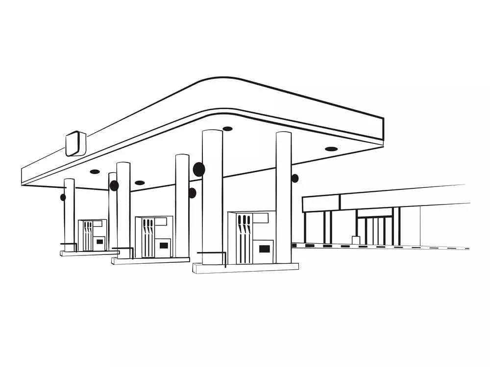 : Druckbar herunterladen Tankstelle zum Ausdrucken Malvorlage