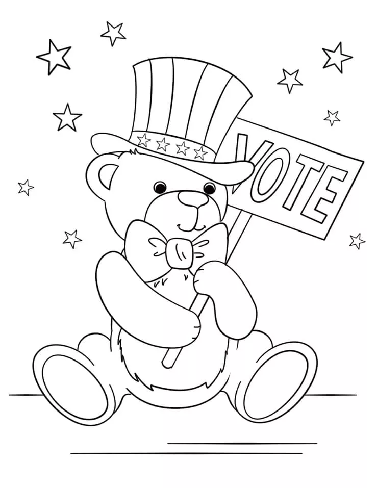 : Druckbar herunterladen Patriotic Teddy Bear Malvorlage