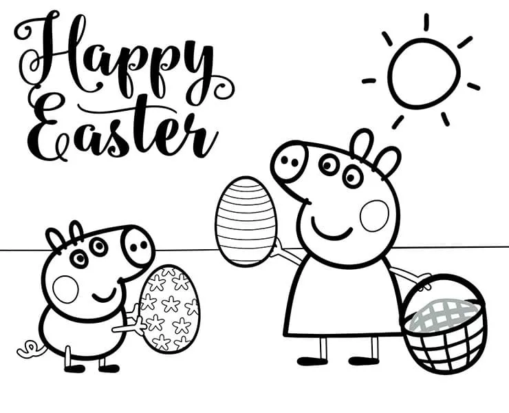 : Druckbar herunterladen Peppa Pig and Easter Eggs Malvorlage