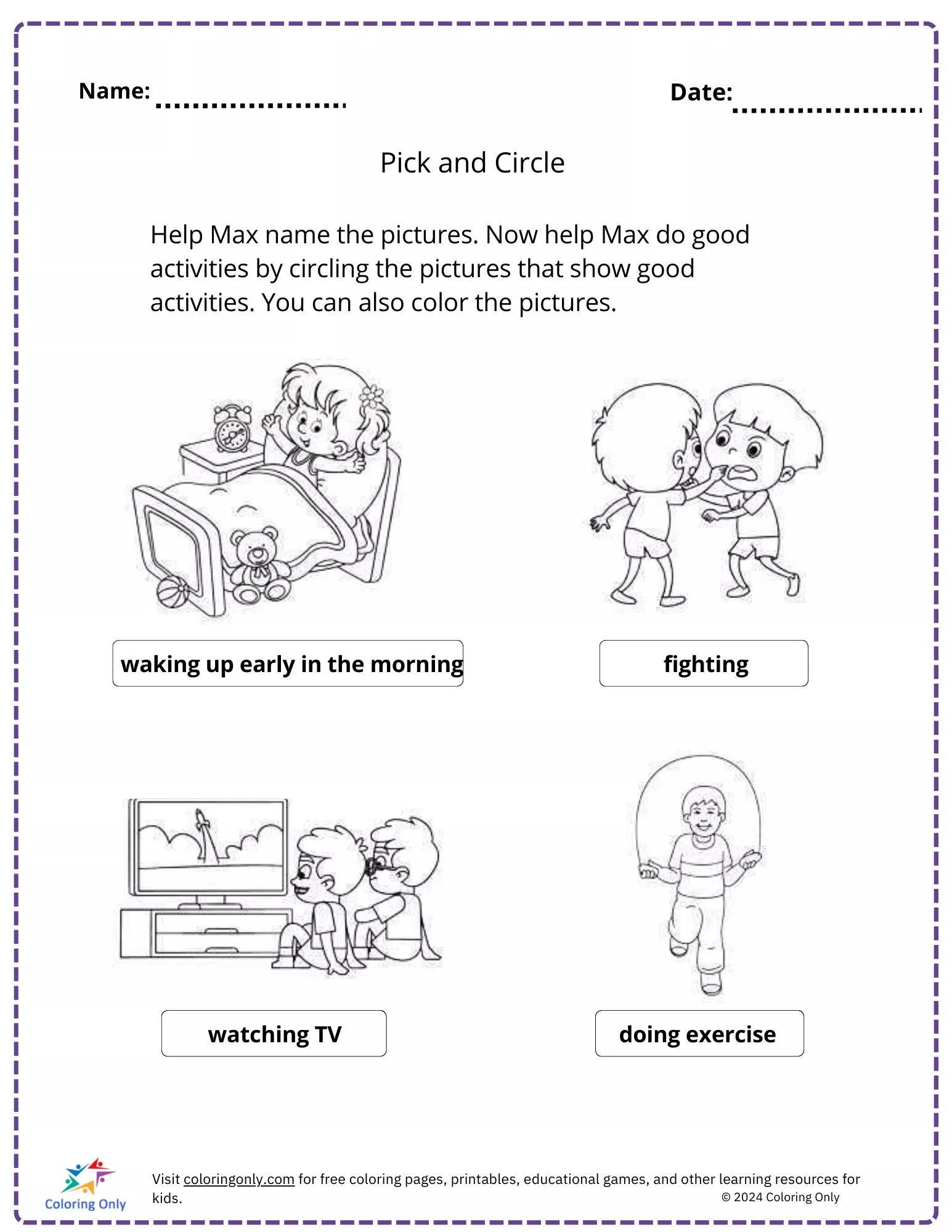 Beschreibung der Färbung : Druckbar herunterladen Pick and Circle free Printable Worksheet Malvorlage