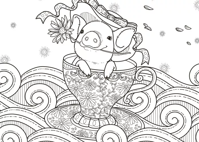 : Druckbar herunterladen Pig And Flower Malvorlage