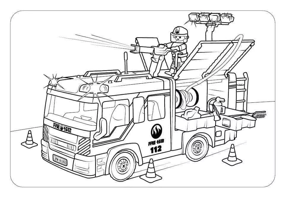 : Druckbar herunterladen Playmobil Fire Truck Malvorlage