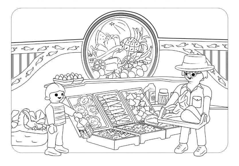 : Druckbar herunterladen Playmobil Market Malvorlage