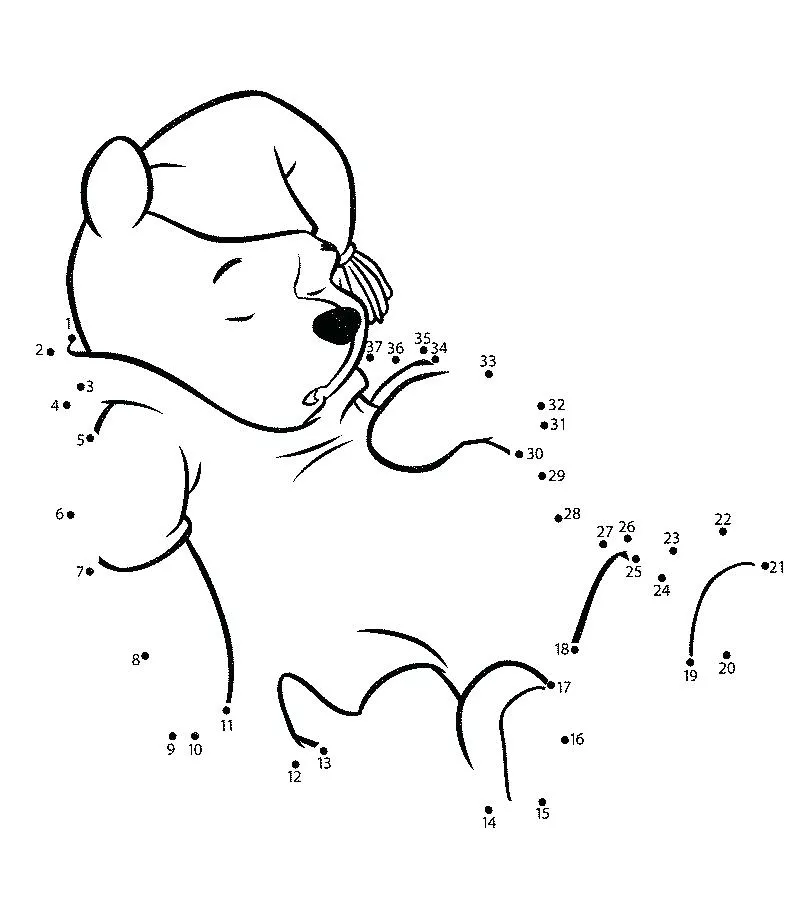 : Druckbar herunterladen Pooh Dot To Dots Malvorlage