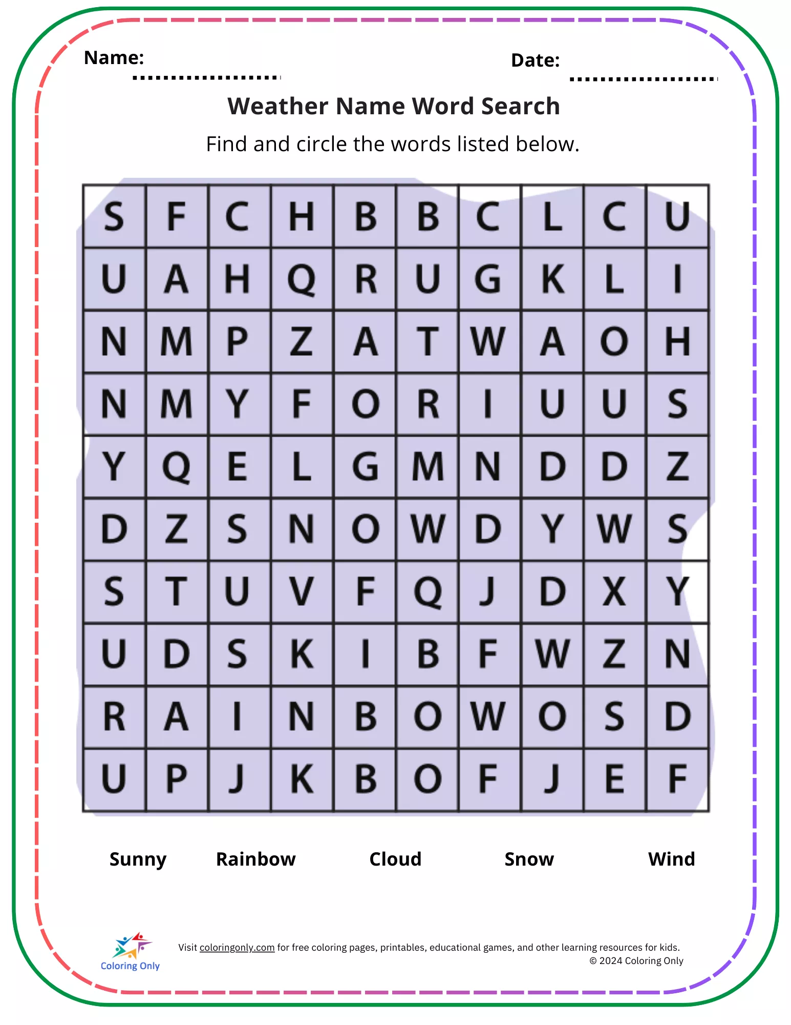 Printable worksheet template