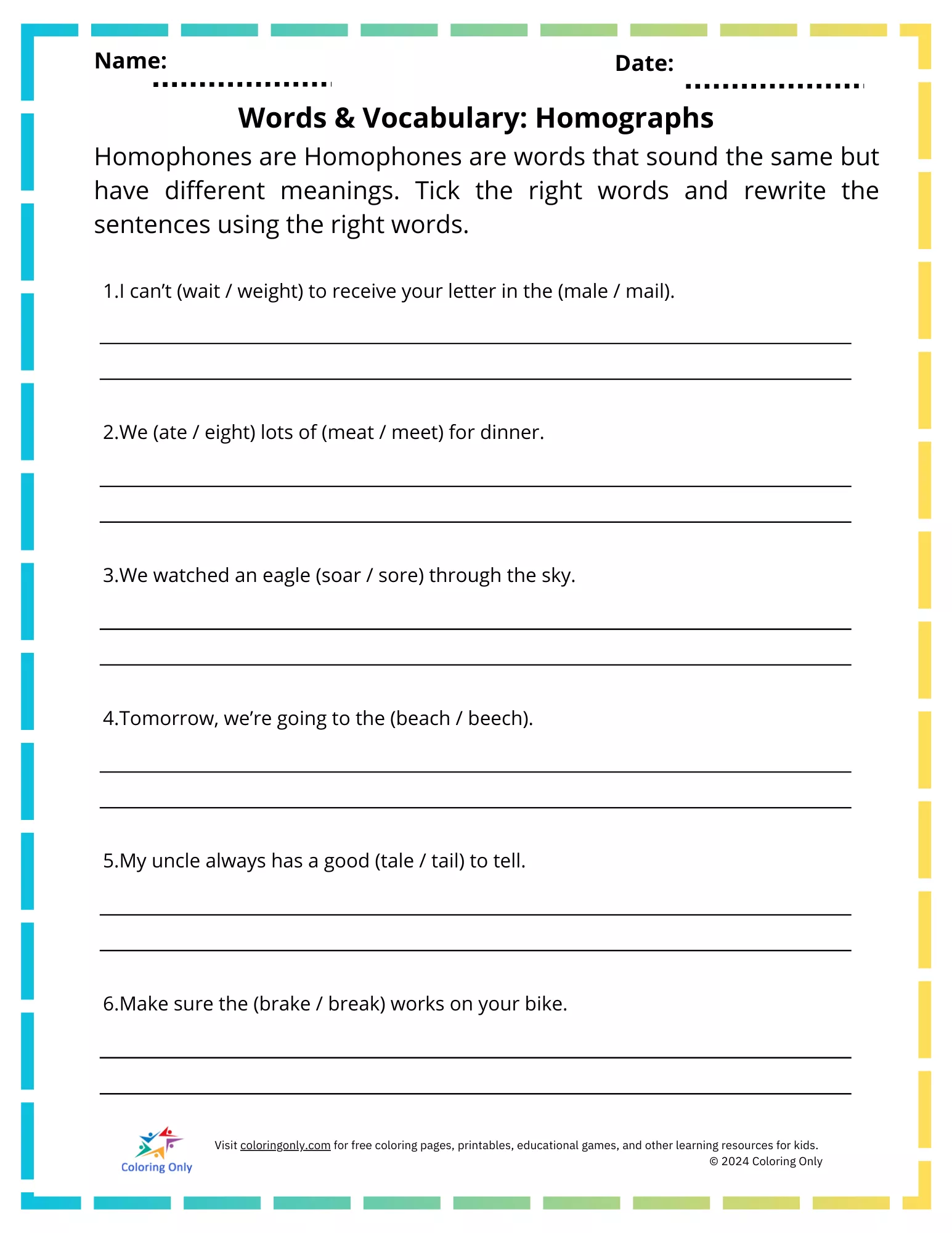 Printable worksheet template