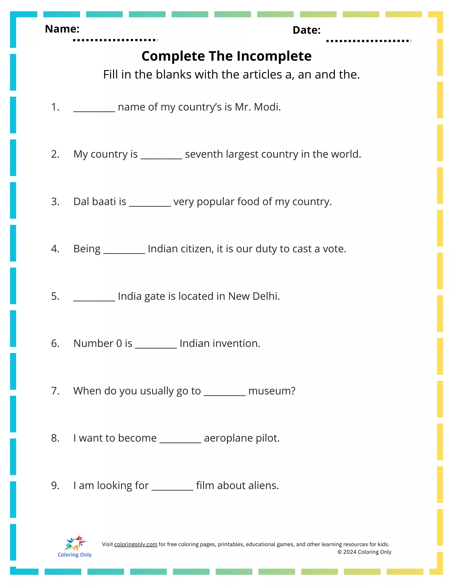Printable worksheet template