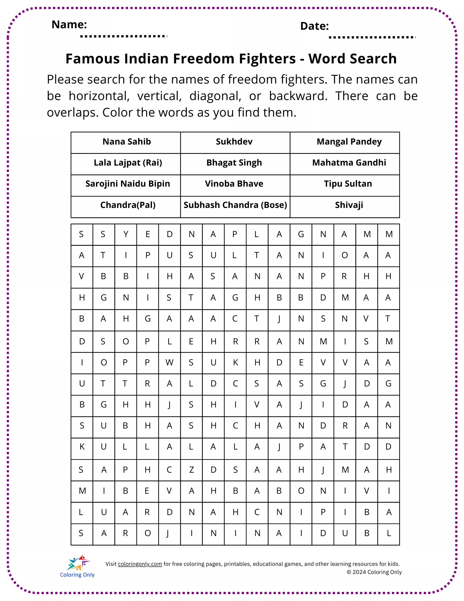 Printable worksheet template