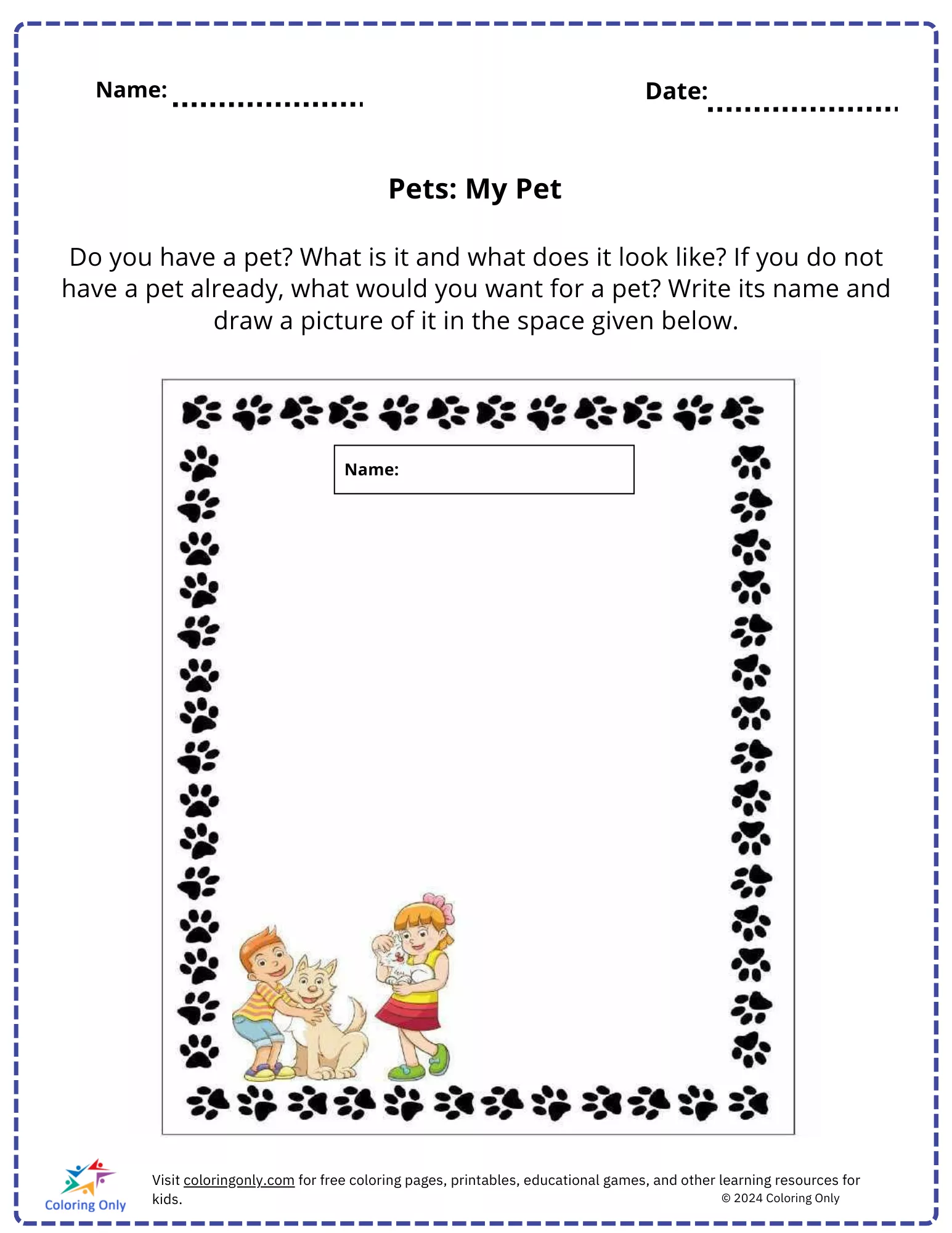 Unsere Haustiere: Mein Haustier Kostenloses druckbares Arbeitsblatt ist eine unterhaltsame und kreative Aktivität für Kindergartenkinder, um ihre Liebe zu Haustieren auszudrücken.