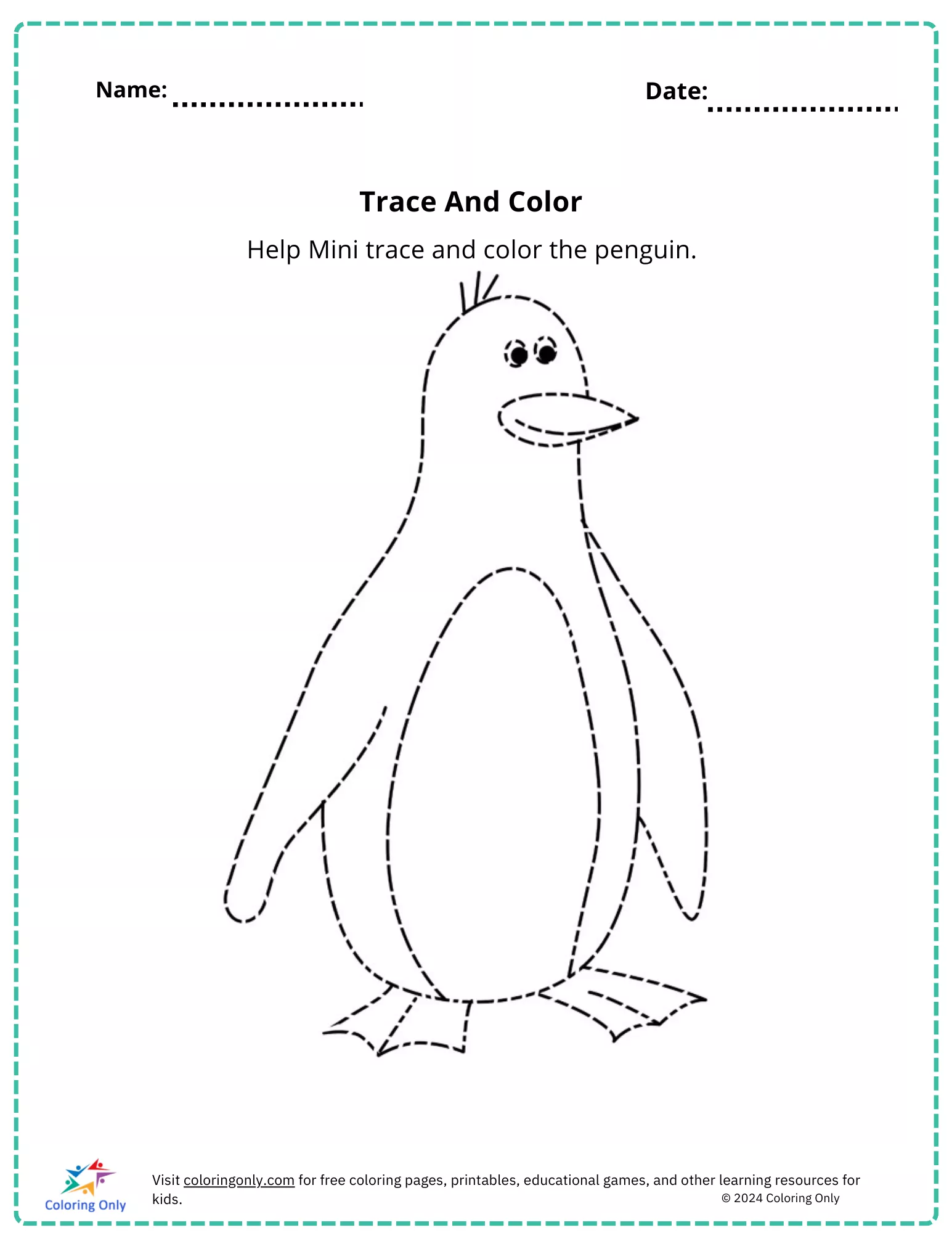 Das druckbare Arbeitsblatt "Trace And Color" eignet sich perfekt für Anfänger, um die Hand-Auge-Koordination zu üben, und kann sowohl im Klassenzimmer als auch zu Hause verwendet werden.