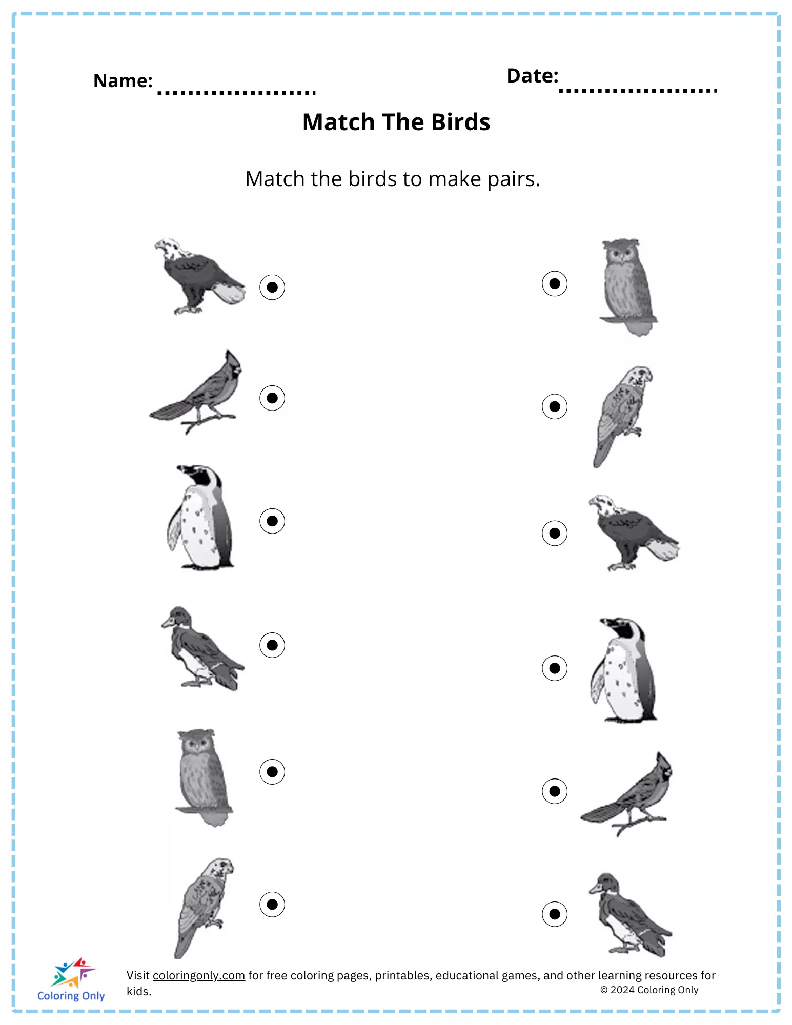 Match The Birds Kostenloses druckbares Arbeitsblatt