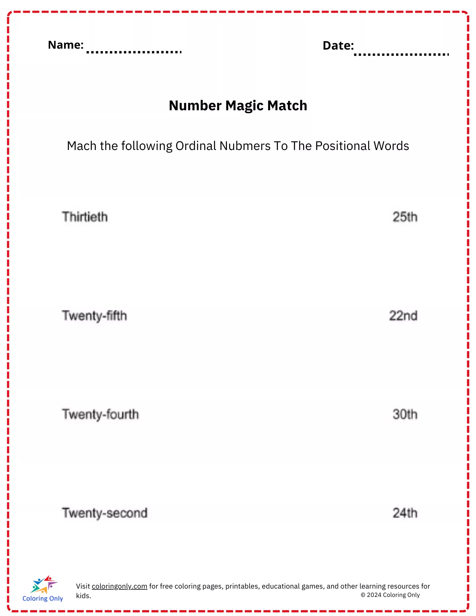Das kostenlos druckbare Arbeitsblatt "Number Magic Match Words" eignet sich perfekt für Aktivitäten im Klassenzimmer oder Lernsitzungen zu Hause und bietet eine unterhaltsame und interaktive Möglichkeit, die Zahlenfähigkeiten in jungen Köpfen zu stärken.