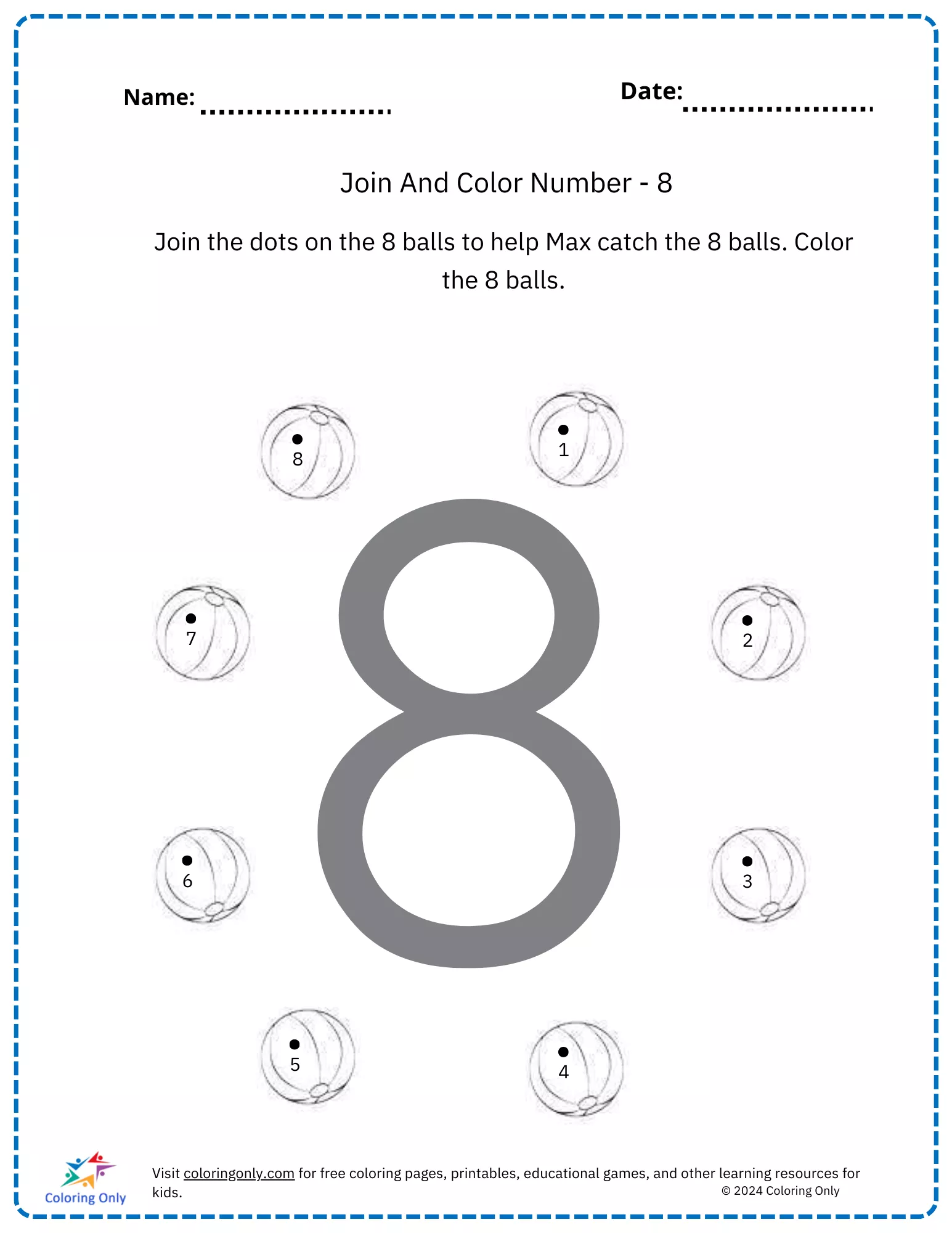 Join And Color Number – 8 Kostenlos druckbares Arbeitsblatt