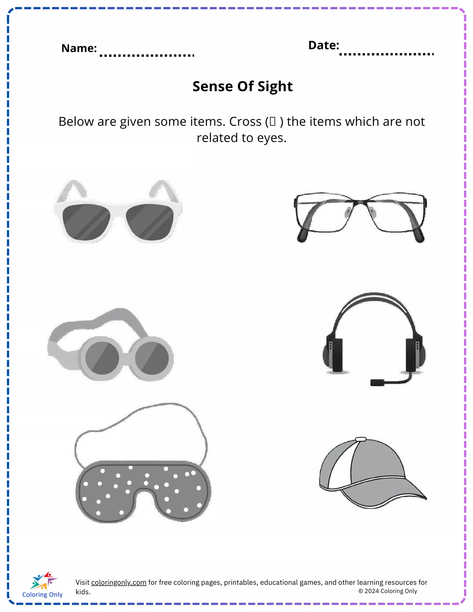 Das "Sense Of Sight Free Printable Worksheet" ist eine interaktive Aktivität für Vorschulkinder, die ihnen helfen soll, die Elemente zu verstehen, die mit ihrem Sehsinn zusammenhängen.