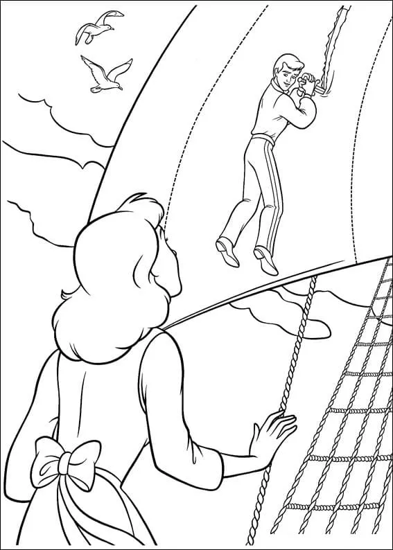: Druckbar herunterladen Aschenputtel und Prinz auf Schiff Malvorlage