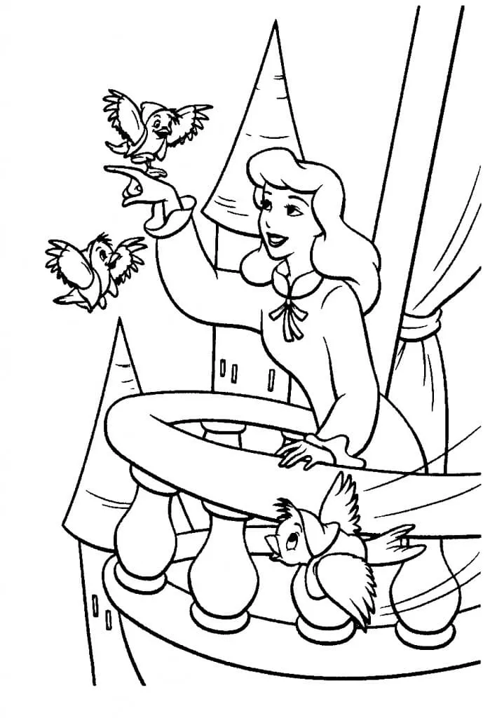 : Druckbar herunterladen Aschenputtel und Vogelfreunde Malvorlage