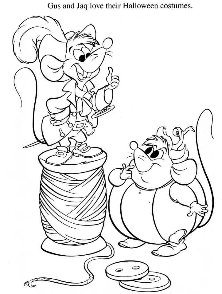 : Druckbar herunterladen Gus und Jaq aus Cinderella Malvorlage