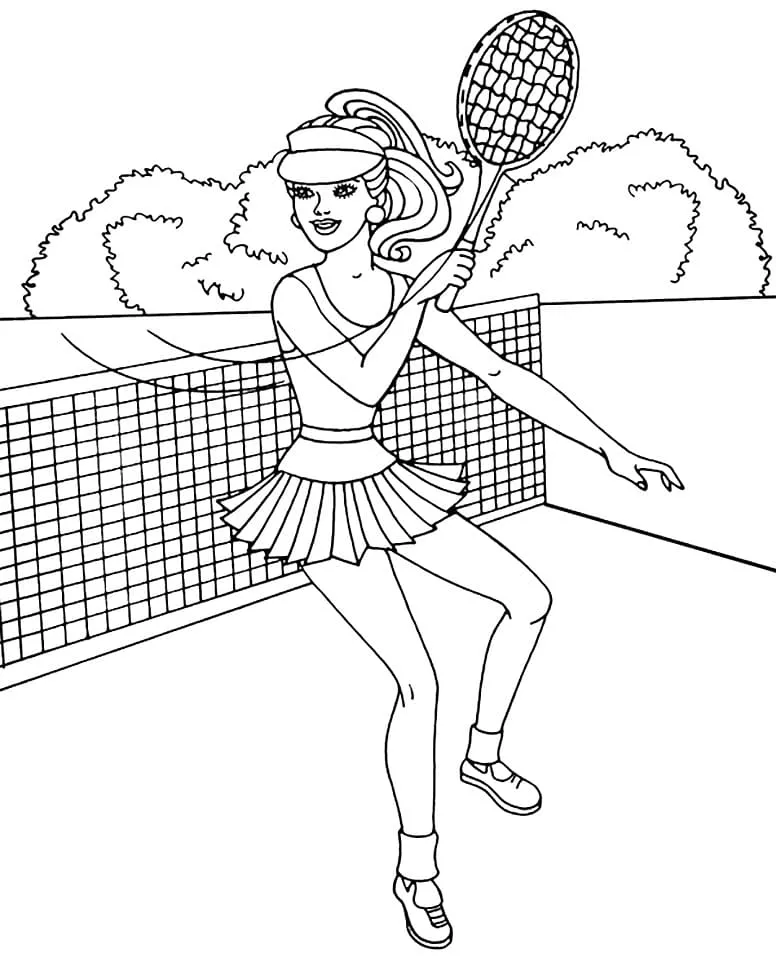 : Druckbar herunterladen Barbie spielt Tennis Malvorlage