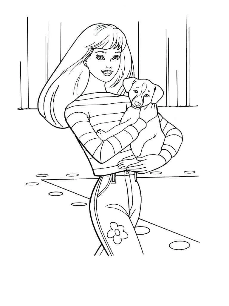 : Druckbar herunterladen Barbie und ein Hund Malvorlage